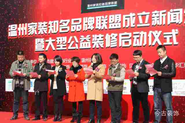 12月14日上午10:00整,由温州市建筑装饰行业协会和温州商报联合主办的温州家装知名品牌联盟(八大装饰公司)在世纪广场正式成立。这八大家装知名品牌企业包括我市今古装饰、丽园装饰、嘉和装饰、九鼎装饰、华派装饰、山禾装饰、贝克装饰、华汇装饰,均为我市装饰行业的排头兵。共同携手打造“放心家装”,真正实现以“盟”之力,为“民”之利。