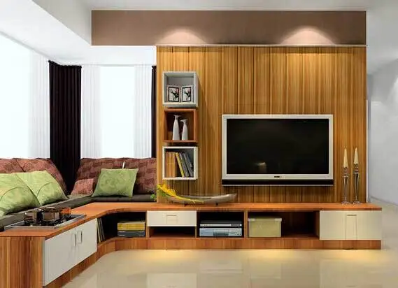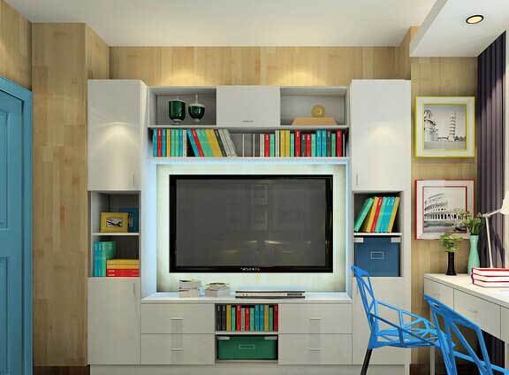 这款电视柜造型简约,特别之处在于左边拼搭了一个小书桌。定制时代,客户的实际需求是放在第一位的。