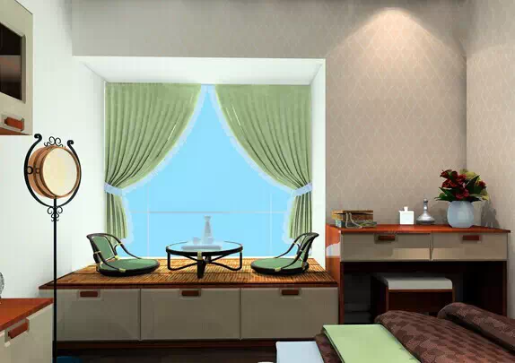 这样的飘窗柜可以营造出小小的休闲区。坚实的面板下面是大大的抽屉,棉被、大衣都可以往里面放。