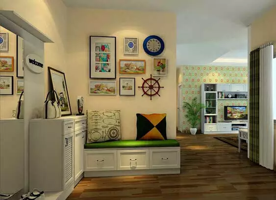 玄关处除了放鞋柜,还可以增加储物柜、展示柜的功能。鞋子以及雨伞、钥匙等常用物品可以放在这里。
