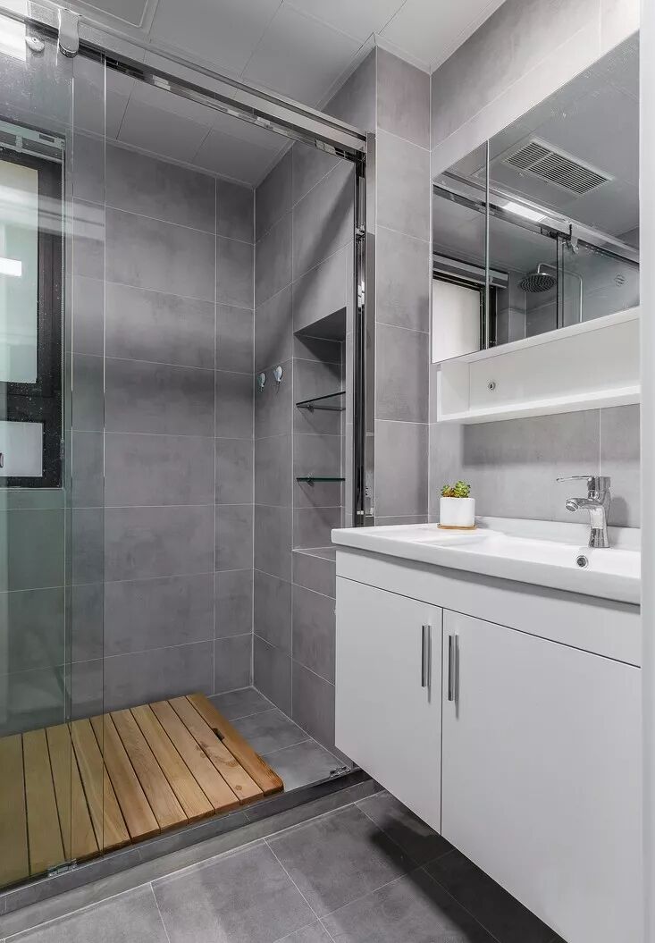 卫生间灰白色搭配低调简约,气质满满。壁龛的设计不仅增加了收纳空间,也显得很有格调。