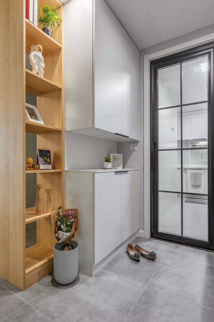 另一侧做了玄关柜,满足一家人鞋子的收纳需求。中部留空,方便摆放一些零散物品。