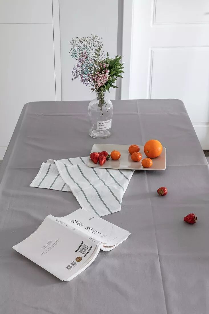 灰白色的搭配纯净而富有气质,简单的摆放一束花,一盘水果,都有了不一样的质感。