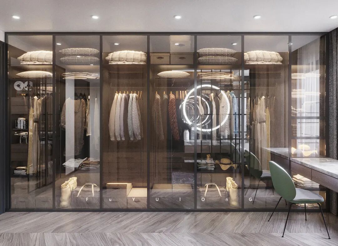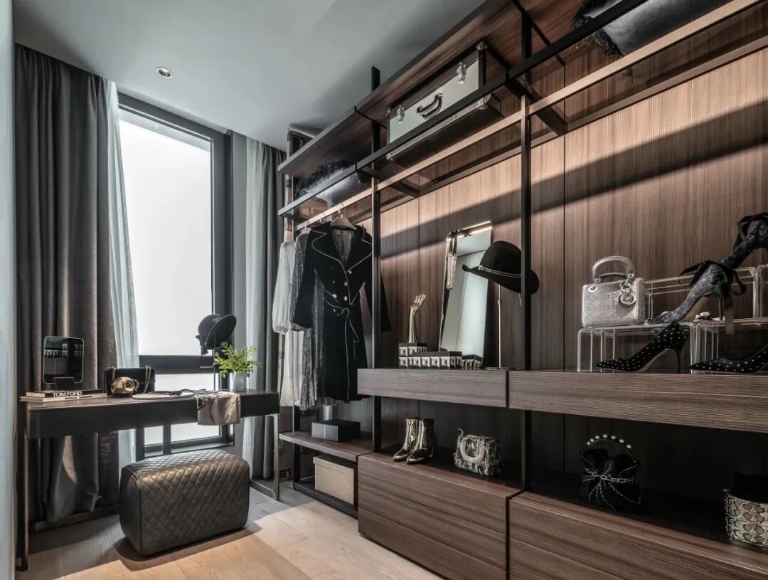 可以加入梳妆台、飘窗等设计,衣柜本身的功能性可以更加细分,使衣物的收纳一目了然。