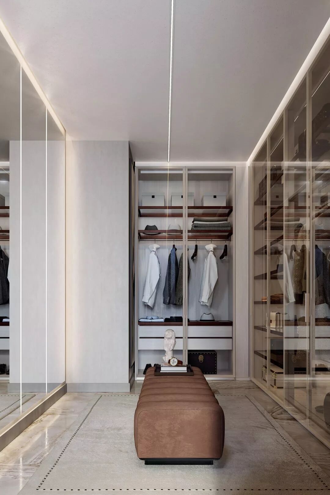 解决了衣帽间的空间问题,在设计上,男女衣物收纳也有所不同。这种区别是因为男女衣物款式、置衣习惯、自身喜好等不同导致的,在设计衣帽间隔层的时候,要兼顾这种差异化设计。