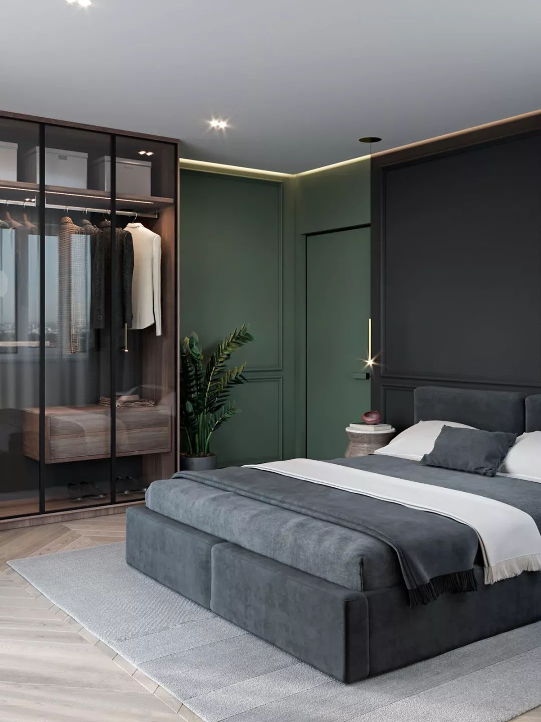 小型衣帽间的布局一般以L型和二字型为主,尤其是在宽且长的空间中,尤其适合设计一个L形的衣帽间,而且短边可以做薄,用来放穿衣镜、挂钩等等缩小空间占有率,稍大一点的卧室就可以做出来,同时也并不会让整个空间看起来很压抑。