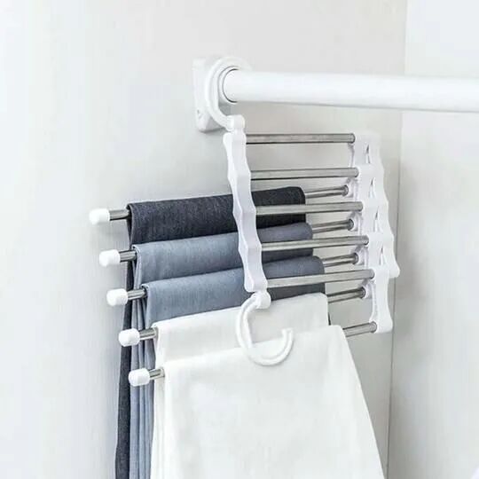 挂裤架:衣橱中的挂裤架也经过防滑处理,悬挂的裤装不易轻易滑落,也不会有折痕,空间利用率也非常高。