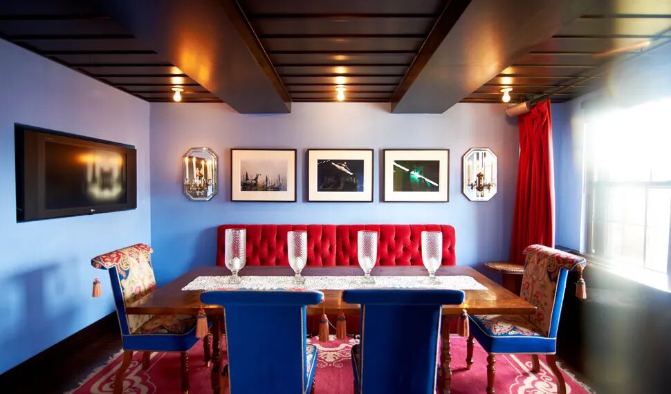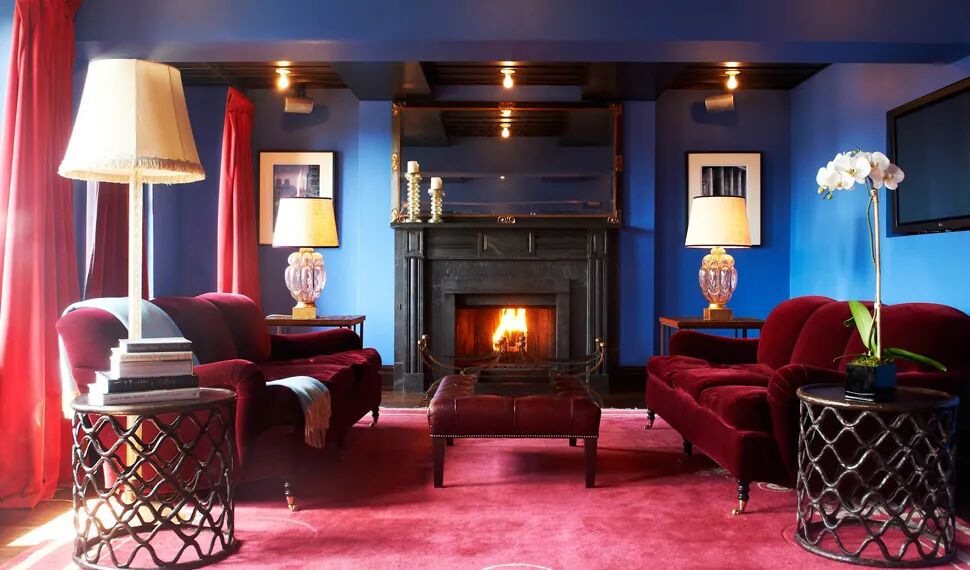 只有蓝色的家,冷清高傲,只有红色的家,躁动不安。两者结合起来,显得平静而有深度。复古的装饰则宣告着华丽而古老的过去。