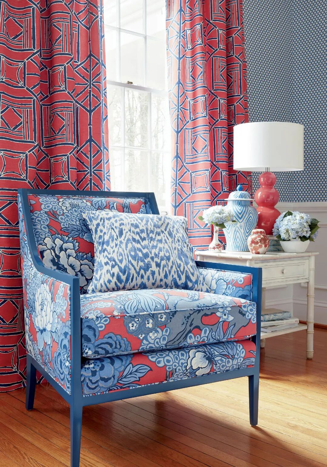 充满中国风的几何图案,红蓝交错,整个空间带给我们古典的美好。