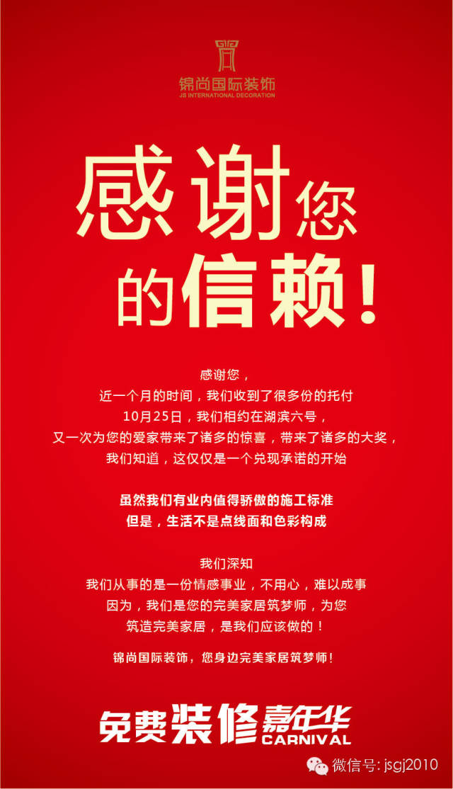 一份家的牵挂,一份爱的托付,一份对我们的信赖,感谢您,我们将会付出百分百的努力为您提供高品质的服务,为您筑造完美新居!