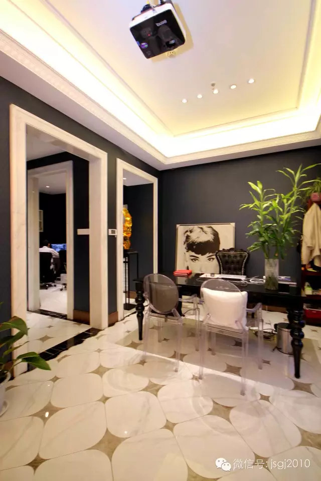 工作室设计采用后现代风格装饰手法,把古典元素及波普装饰元素融合于现代风格中,形成一种风格鲜明的个性主义,既有古典元素的文化气息,同时也有时尚明快的现代感。