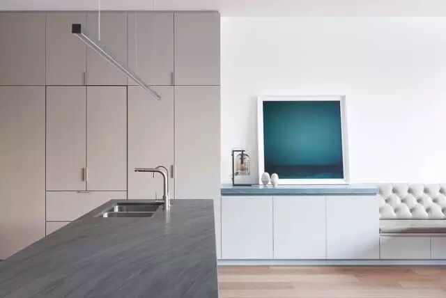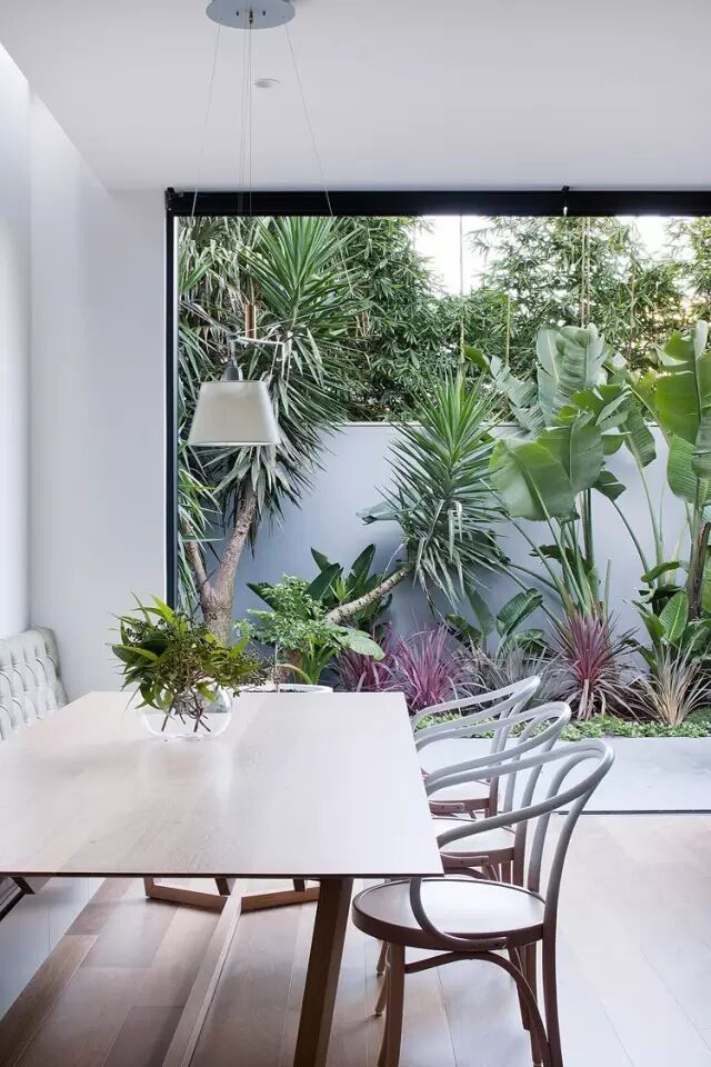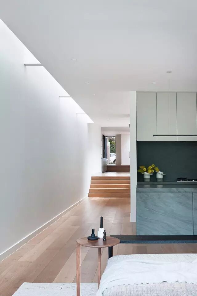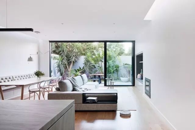客厅、餐厅与厨房相互连通,落地窗的融入,模糊了室内外的界限。