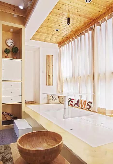 ▲将榻榻米抬高部分直接做成柜子,不仅节省了空间,又兼具了收纳的功能,非常实用。