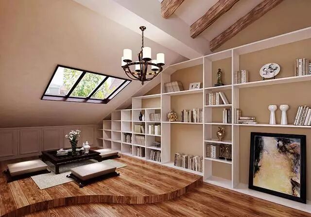 ▲将小阁楼打造成书房也是一个不错的选择,利用抬高设计做成榻榻米区域,不会显得拥挤,反而宽敞明亮。