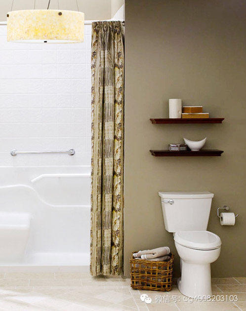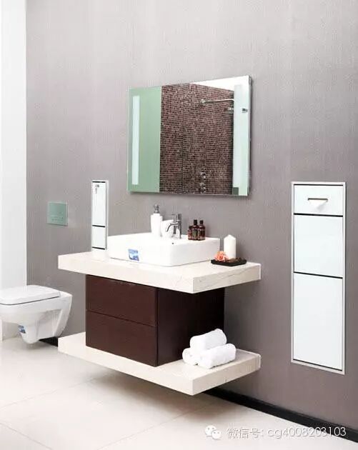 搁板不仅仅可以放在起居室,马桶上方也是可以的,大多数家庭在马桶上方都不会装修什么东西,大面积的空间就这样被白白浪费,适当的加上两个小隔板,放书放香薰都很方便。