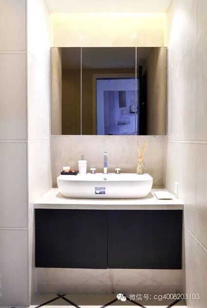镜子是最简单的小洗手间装修法,立竿见影的效果也很实惠。最需要注意的是镜子的面积和高度要量力而行。