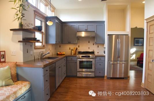 编辑点评:更换橱柜成本高又麻烦,如果橱柜只是外形显得陈旧或过时,不妨考虑一下用油漆涂料为橱柜“改头换面”。这样不仅可以节省成本,也让旧橱柜焕然一新,更提升了厨房的整体美感和活跃了空间氛围,一举多得。