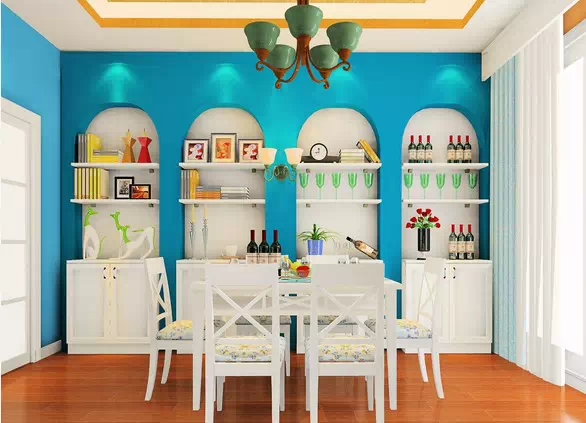 摆脱单调的餐边柜,蓝色拱门的韩式田园风餐厅,满满的都是浪漫。