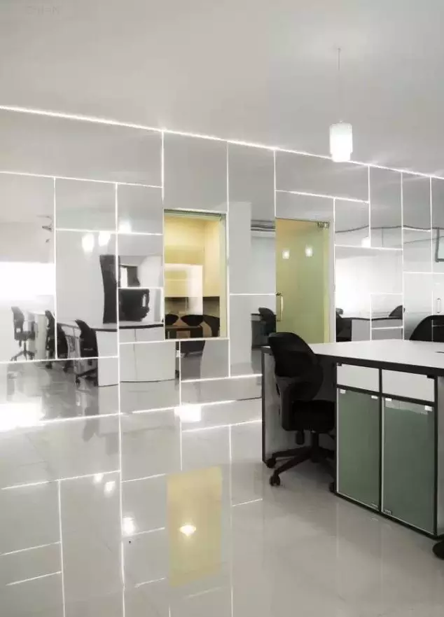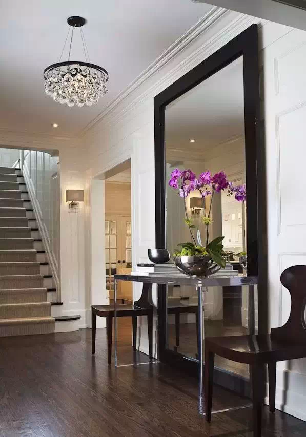 墙体的装饰,还可以利用镜子的反射,从而达到增强空间感的效果。