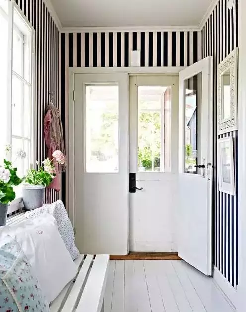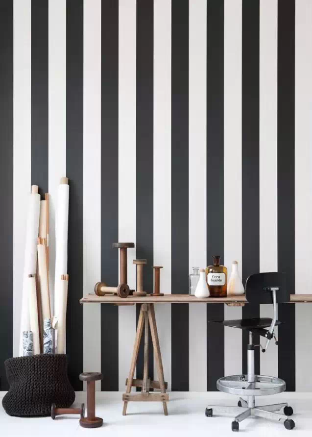 墙体装饰通常会选用壁纸,竖条纹的壁纸可以让房间视觉上显得更高。如果造价有限制,你也可以自己用油漆刷出竖条纹的装饰。