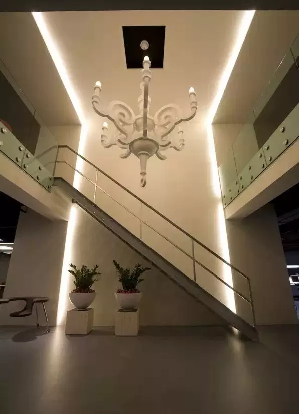 空间的四周增加发光灯槽,灯光向侧方向和向上打,光让房角有延展感,不仅可以增加视觉高度的提升,还可营造舒适的氛围。