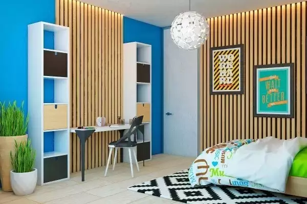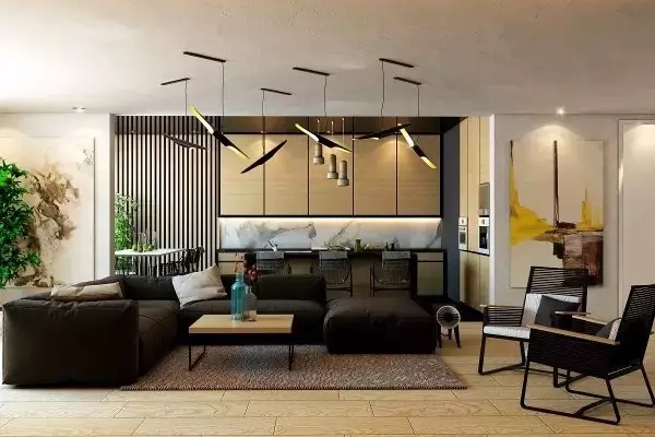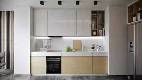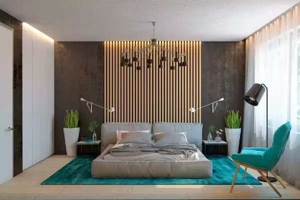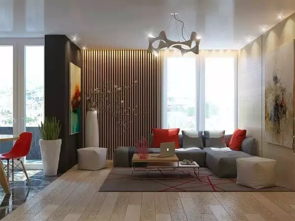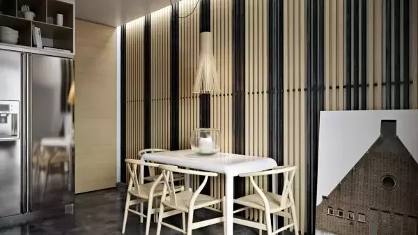 设计师 Eugene Anfilova 的案例惊喜不断,木材板条被捆绑在每一个空间,从客厅到卧室墙壁上的板条纹理有着让人沉静下来的作用。此外,中性色彩的木材每种颜色通吃,不同的配色方案不同的居住氛围。