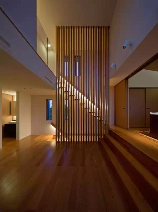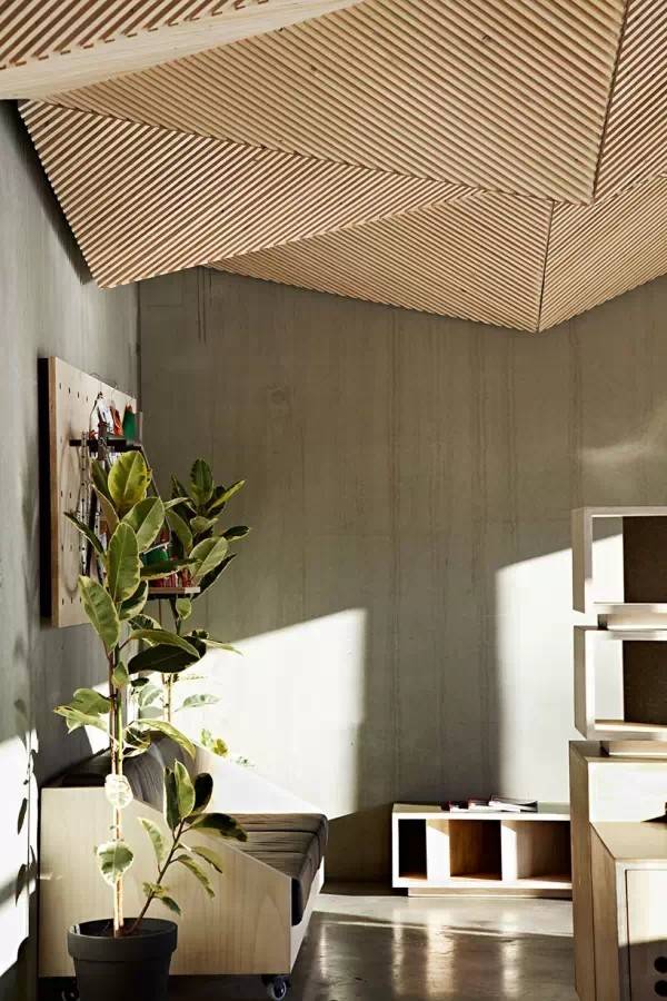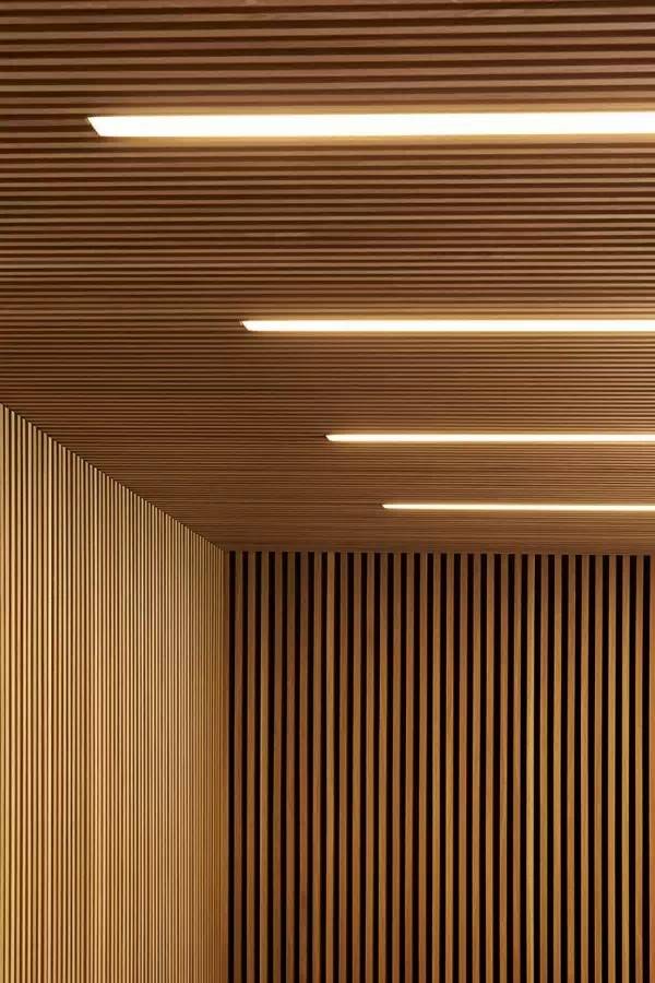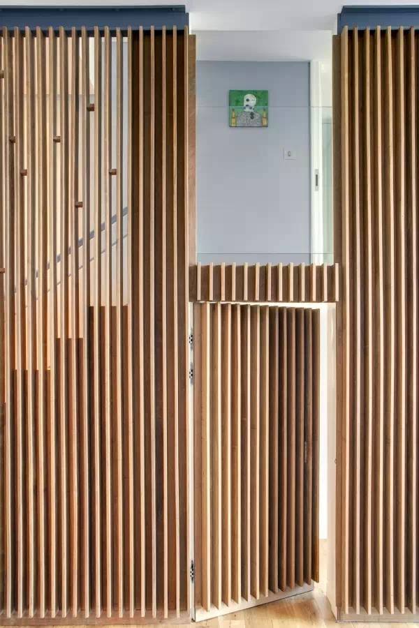 最后阿联来一些板条在多种空间的普遍使用,首先我们看到的是木材板条可移动的屏蔽墙。
