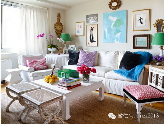 白墙,木地板,白色家具,白纱帘,所有你目之所及的色彩,全部是通过布艺、灯饰、花、家品实现的。
