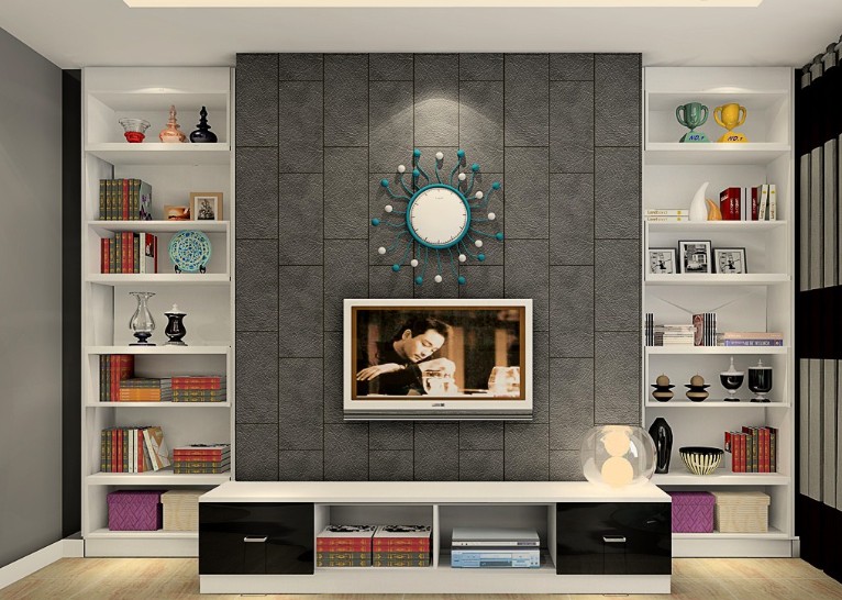 在凹位处做了柜体,合理利用了空间,背景墙看起来和谐对称,更加美观。