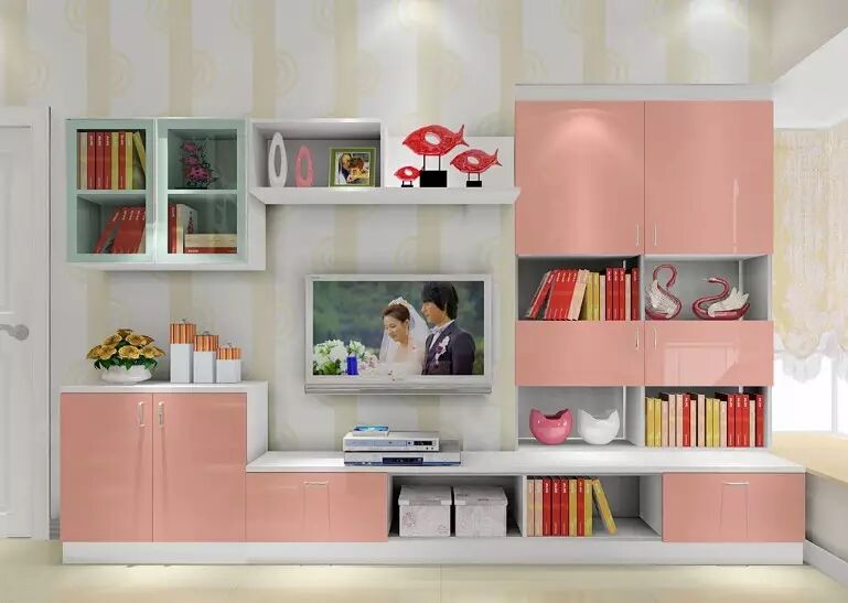 粉色柜体的搭配,让空间显得更加时尚、浪漫、妩媚。