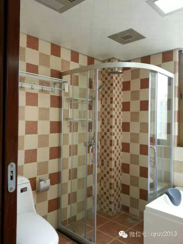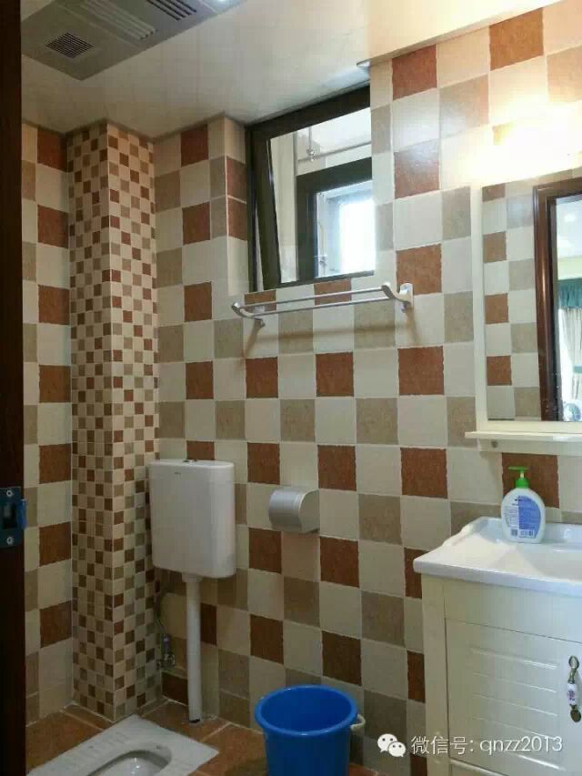 ▲卫生间三色瓷砖贴饰出素雅的墙面和地板,给卫生间带来恬淡的田园色彩,象牙白的浴室柜与镜框也是成为卫生间装修设计的亮点,使得整个空间尽展高雅魅力。