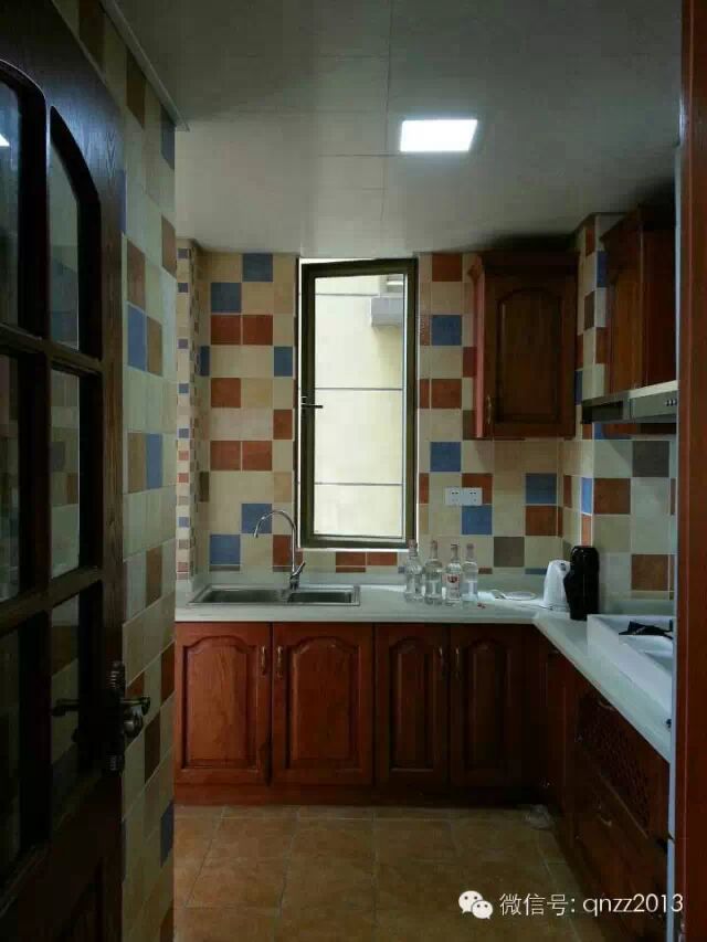 ▲整个厨房看起来清新而贴近自然,整体橱柜选用棕色木质材料,有种内敛的高雅。厨房空间虽小,但储物空间很多,使用起来很方便实用。