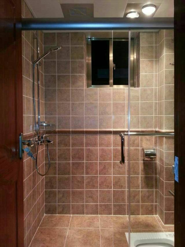 ▲浴室墙地砖铺贴均匀、整齐,柔和的色调让卫生间也变得古色古香。