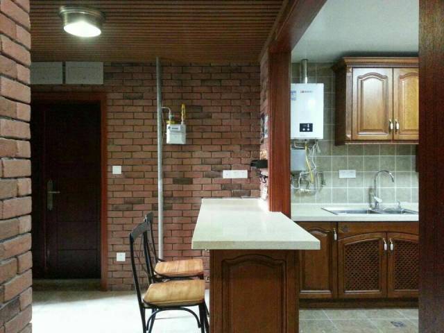 ▲开放式厨房设计感强烈,布局合理,极具田园风尚,漆作木作堪称经典,整体色调和谐,厨房连接入户花园,带给客人极强的视觉感受!