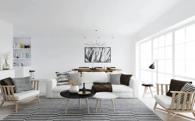 2. 家具和纺织品在明快的中性色之间选择,如白色、米色、灰色、棕色和有趣的黑色。