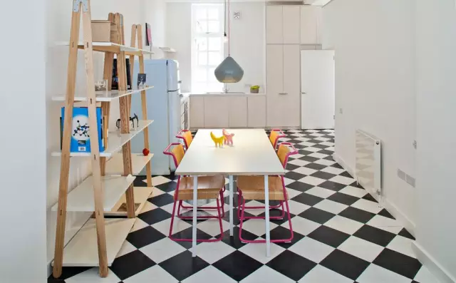 16. 看似简单的空间实则非常巧妙融入时尚元素,如旧木地板的处理与波普艺术的点缀。