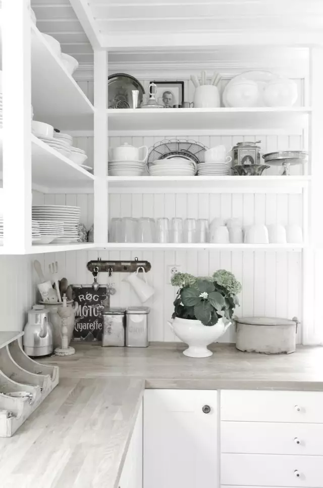 28. 白色在厨房里极为明显,白色橱柜,白色家电还有白色的碗与质朴的木元素搭在一起,浑然天成。