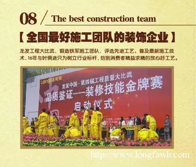 龙发工程大比武,锻造铁军施工团队,评选先进工艺、普及最新施工技术。16年与时俱进只为树立行业标杆,给消费者精益求精的放心好工艺。