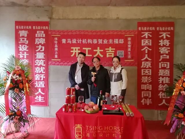 青马设计机构市场部经理王建军,对业主新居开工表示真诚祝贺。