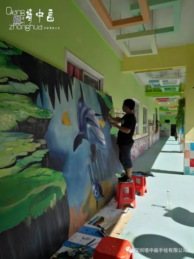 以下的案例是深圳墙中画手绘公司在为松岗新鹏第七幼儿园做的3D立体画.这是一家以美术为特色的幼儿园.画画能全面的启发儿童的智慧.