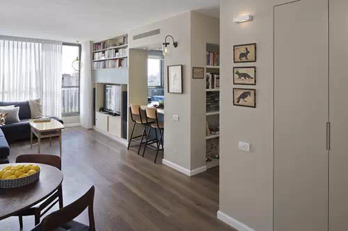 编辑点评:设计师刻意淡化了公寓的隔断设计,有效地扩阔空间感,也使各个功能区的联系更紧密,公寓的整体布局显得更紧凑。