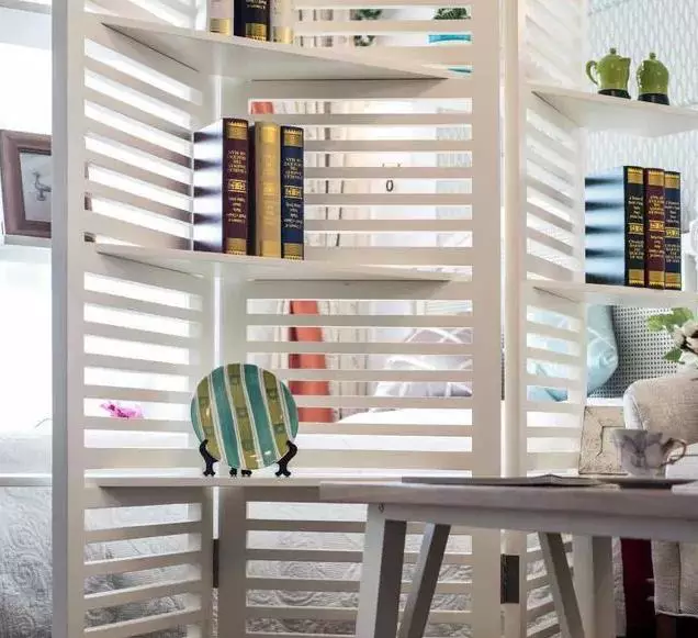 多功能型家具是小户型设计利器,就如这个格栅屏风。女主人大可以随心情摆放自己心爱的小玩意儿。