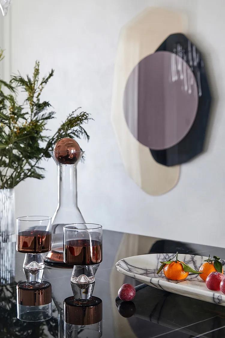 别具艺术感的摆件、细腿造型的餐椅,在成熟厚重的黑色与鲜艳的橙色组合之间,点亮了空间的调性,也融入了别样的趣味性,直接升华了对美学家居的另一重体验。