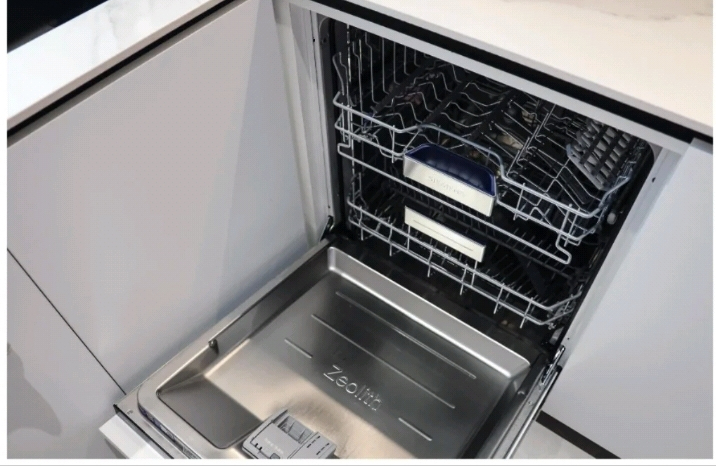 水槽下方拉篮,一般放一些洗碗机用的洗碗筷、洗涤剂、清洁工具等等,抽拉方便,轨道也很顺滑。