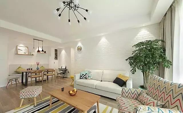 ▲以白色为主调的客厅,嫩绿色和亮黄色的点缀,让客厅像一帧精美的图画。