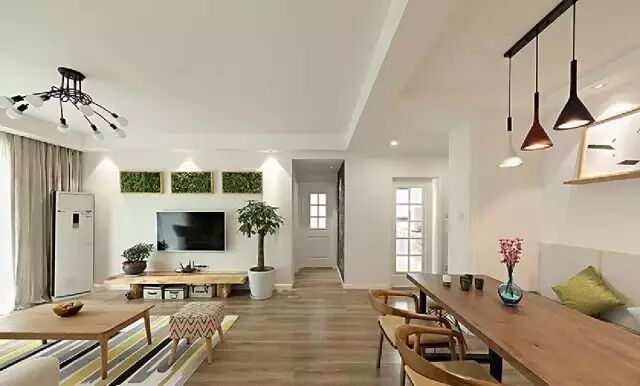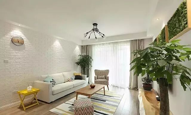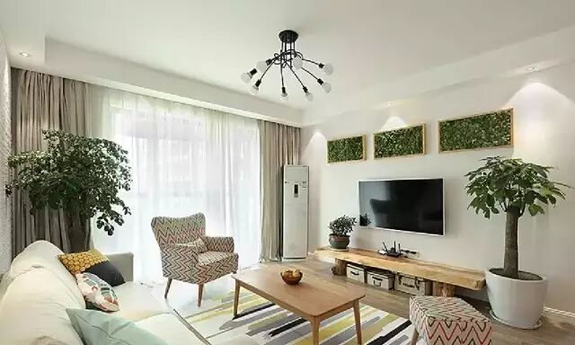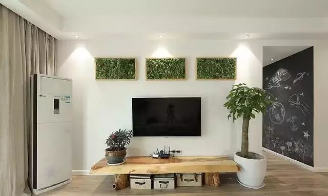▲电视墙不放挂画,把植物种在墙上,瞬间提升家的清新范儿。
