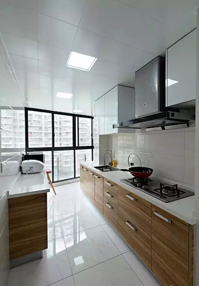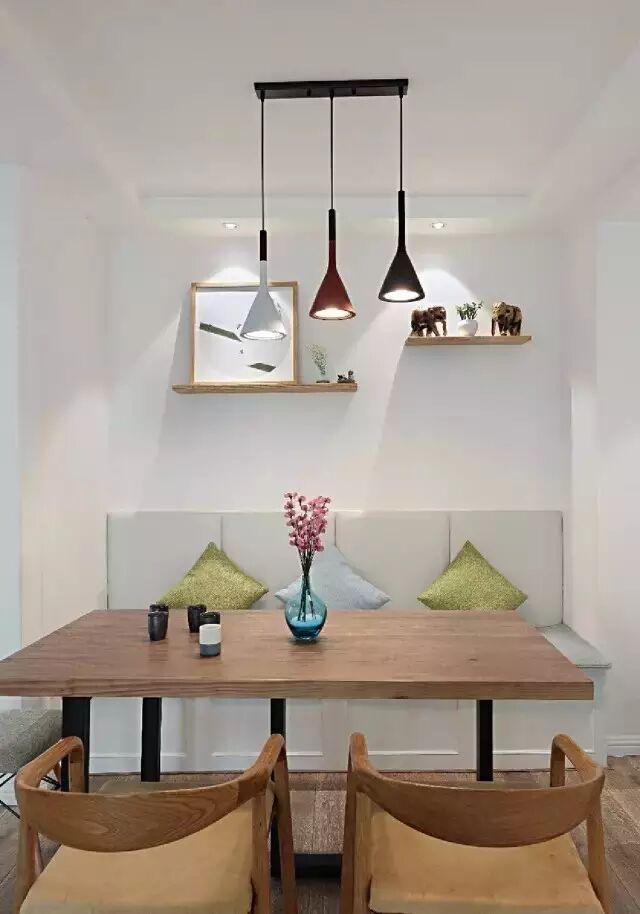 ▲借一面墙挖空做餐厅,卡座+长桌,餐厅2㎡就足够了。