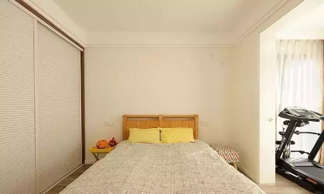 ▲暖色调的房间给孩子安全感,阳台放置一台跑步机,让孩子德智体全面发展。