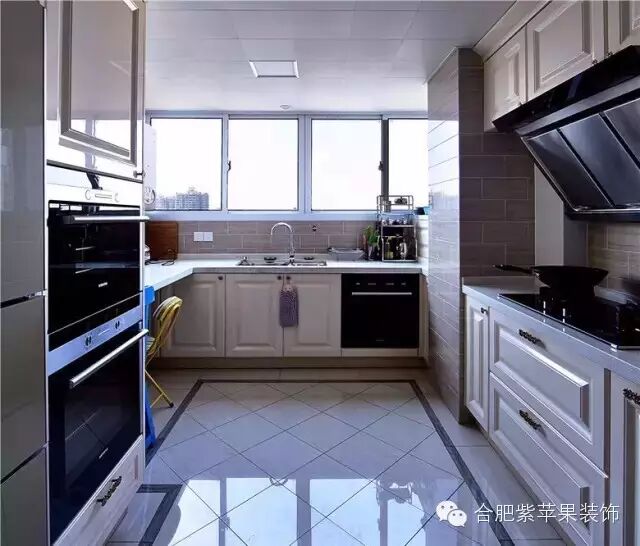 ▲ 地面用光洁的大地砖,墙面用淡淡的蓝绿色