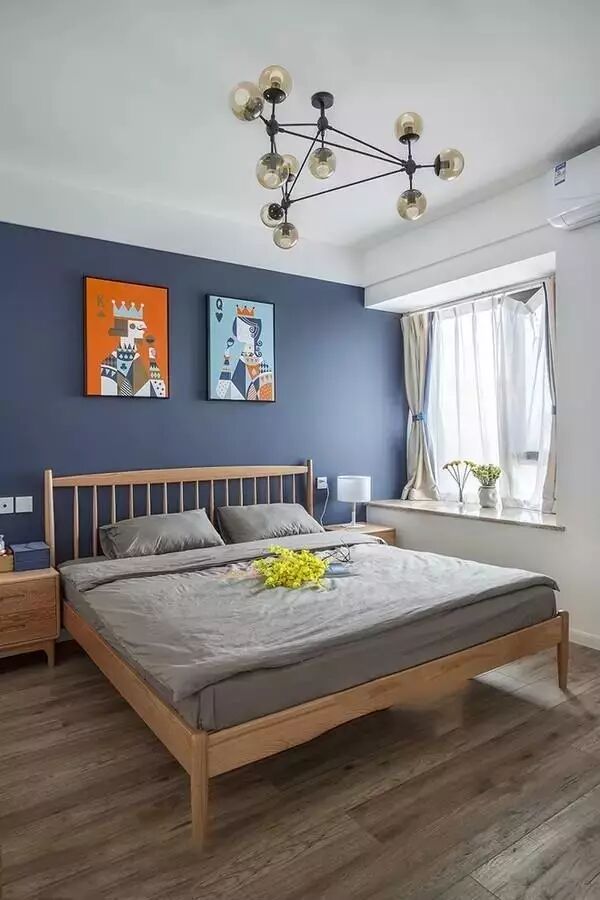 ▲深蓝色背景墙营造出宁静的氛围,阳光柔柔地照进来,给人舒服、安宁的享受。